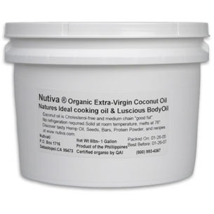 Nutiva Extra-Virgin Coconut Oil is the key to optimizing taste, texture, color, and aroma. Nutiva's method of processing allows for a very smooth, slightly sweet coconut flavor with a light aroma. Contrast this to 99 percent of the coconut oil used today in cooking and body care: first the coconut is chopped and left to dry in the sun for days, then the meat is scooped out and sent thousands of miles to giant oil mills where the oxidizing coco meat is refined, bleached, and or deodorizedand, ironically this product is often labeled as certified organic. The Healthiest All-Purpose Cooking Oil Discover the amazing versatility of coconut oil Coconut oil is ideal as a high-heat cooking oil, a better than butter replacement on bread and steamed veggies, or a tasty and nutritious substitute for shortening in baking. We suggest you use coconut and palm oils for cooking, and olive (a heat-sensitive oil with a low smoke point), hemp, and flax oils for cold dressings. This will help increase your levels of healthy Lauric Acid, Omega-3, and GLA fatty acids, while lowering your intake of Omega-6 and junk oils. While we need to consume a 3:1 ratio of Omega-6s to Omega-3s, the average American diet provides a ratio of 15:1 and often 30:1! Suggested UseThis versatile coconut oil is ideal as a high-heat cooking oil (up to 350 degrees), a healthy substitute for shortening in baking, a \better than butter\ replacement on bread and veggies, and a luscious body oil. Ingredients